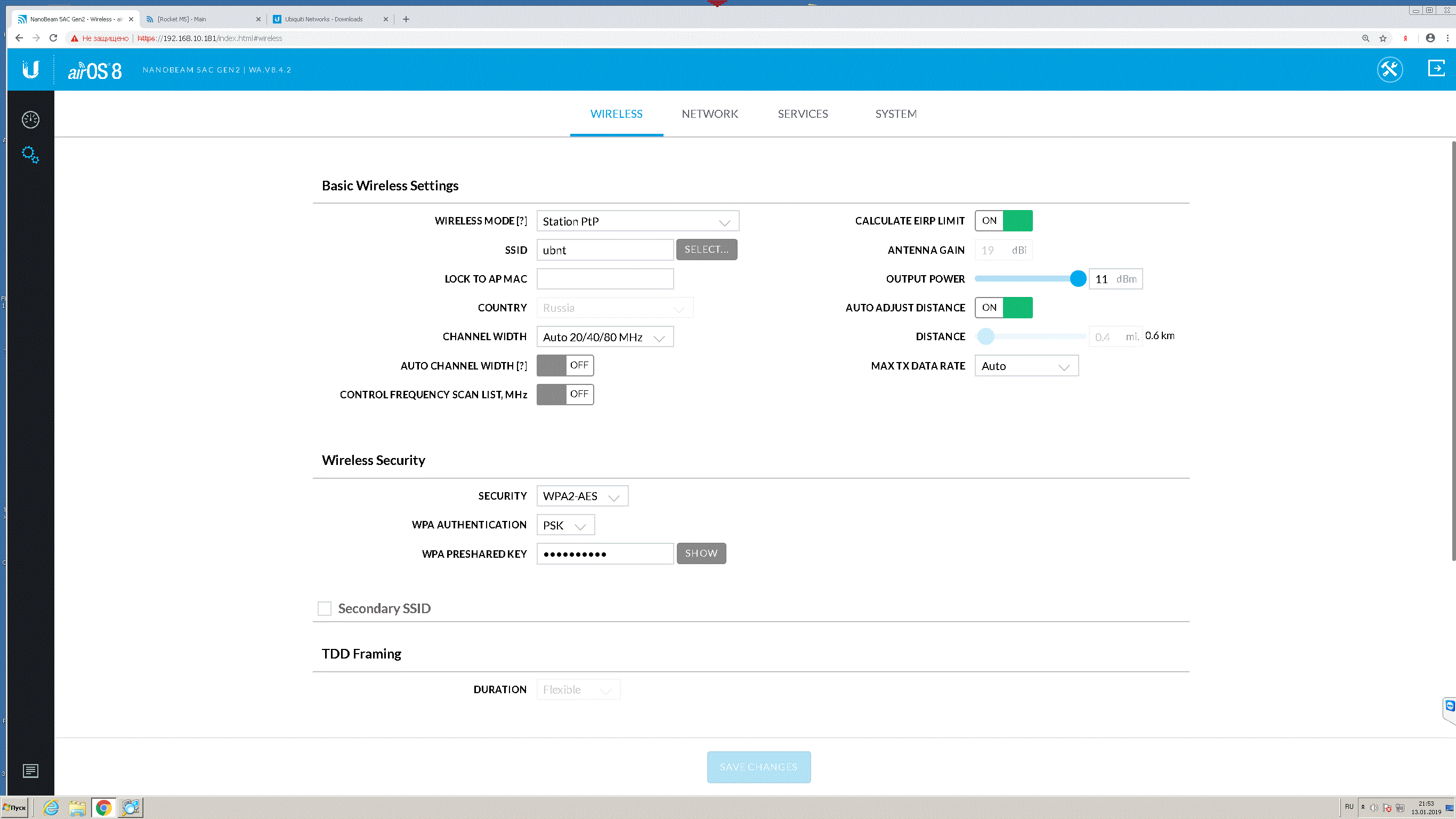 Клиентская сейчас на объекте в 10 матрах от точки доступа , возможно не направлена сейчас, на обеих регион Россия выставил, точку поиском видет но "Lock to AP" не активна
