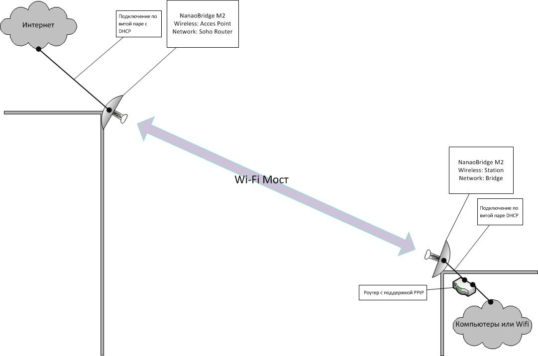 NanoBridge M2 поддерживает пропускание PPtP