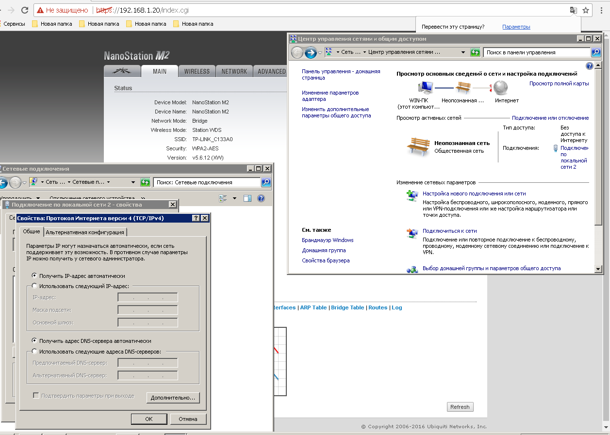 Здравствуйте.Люди Добрые помогите Пожалуйста.Купил антену Нано стати М2. Месяц мучаемся.не можем настроить не в каком режиме.Весь нет перелопатили,кучу сайтов,видео,пытаюсь настроить в режиме клиента что бы подключатся к вай фаю.Вот скрины настроек антены. А следующие скрины настроек и как выглядит сеть на компе.Можете дать детальное видео или скрины настроек как клиент.Настраивали по скринам как на сайте результат тот же.Или мы что то упускаем.ПОМОГИТЕ ПОЖАЛУЙСТА.