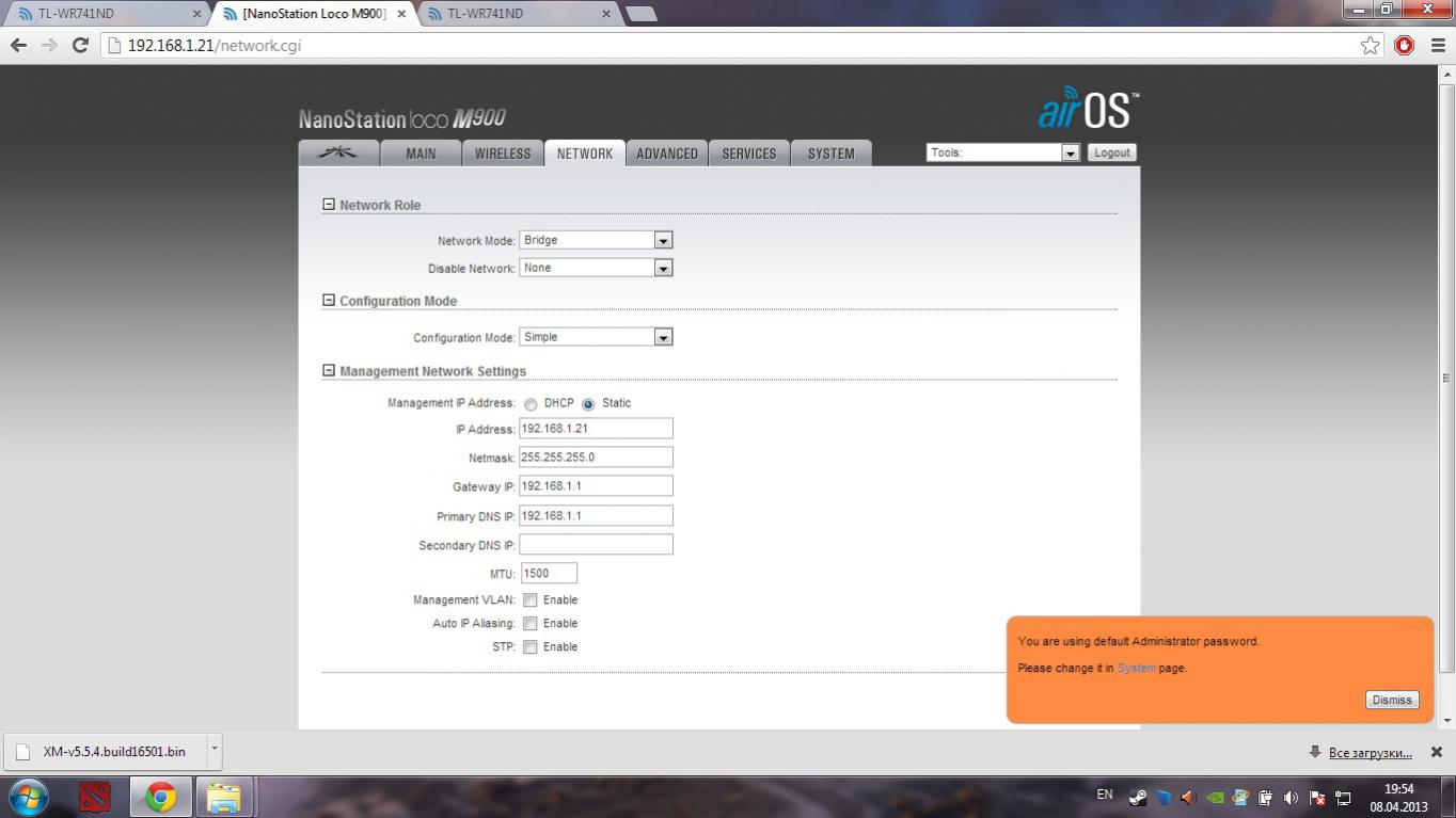 Здравствуйте, у меня возникла проблема с настройкой данной антенны. Самому настроить не удалось, поэтому я вызвал мастера. Небольшое вступление : у меня квартира и частный дом, прямая видимость, расстояние ~800м. Настройку проводил мастер из фирмы, после первого раза все работало нормально, на хорошей скорости(11мб/с) около 3х часов, потом слетели(как он выразился) настройки на Access Point, т.е. настройки в квартире. NSM900 обновили, обе, до 5.5.4. Работало еще 2 дня, потом вовсе отказалось работать оборудование. Подскажите, пожалуйста, что можно сделать.