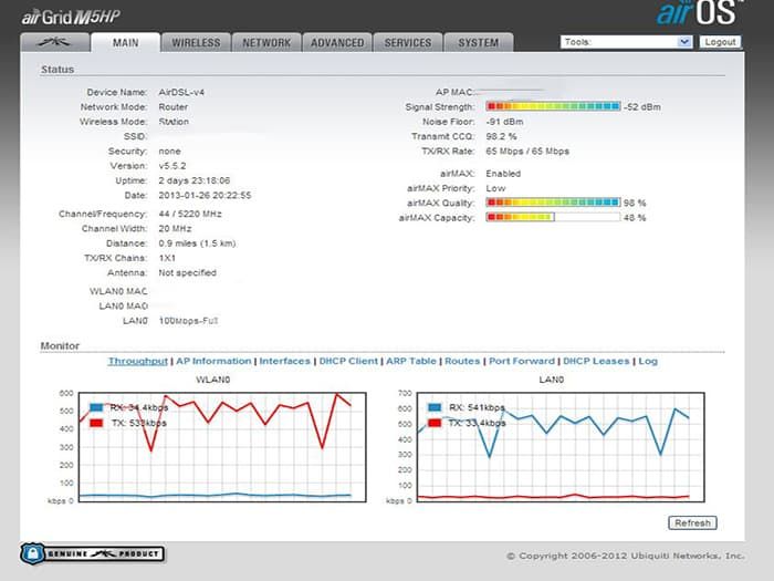 | На AirGridM5 установлен процессор Atheros MIPS 24KC с частотой работы в 400MHz и 32 мегабайта оперативной памяти стандарта SDRAM.