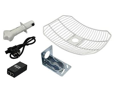 | Вместе с устройством поставляется блок питания PoE, набор креплений для точки доступа на мачту или иное место установки, и фиксатор кабеля. | Комплект поставки устройства включает в себя PoE инжектор питания, адаптер 220В-24В и набор монтажных креплений для установки маршрутизатора на радиомачту. |