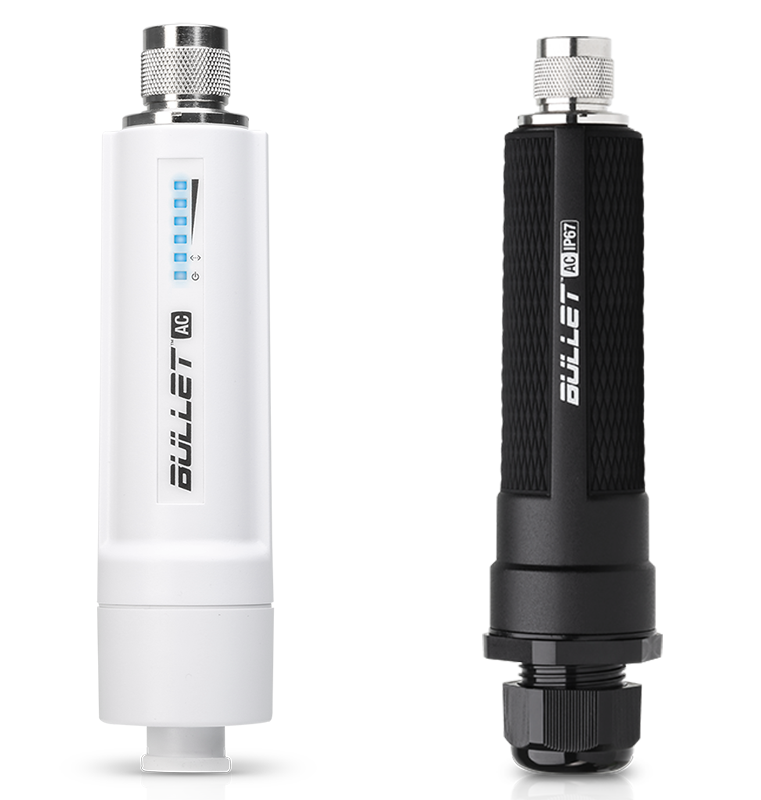 Bullet — это серия миниатюрных беспроводных радиомостов airMax от компании Ubiquiti. Особенность этой серии заключается в оригинальном конструктивном исполнении корпуса. Радиомосты просто ввинчиваются непосредственно в антенный разъем, что исключает использование кабеля между радиомостом и антенной и улучшает их взаимодействие между собой. В зависимости от модели, радиомосты работают на частоте 2.4 ГГц или 5 ГГц.