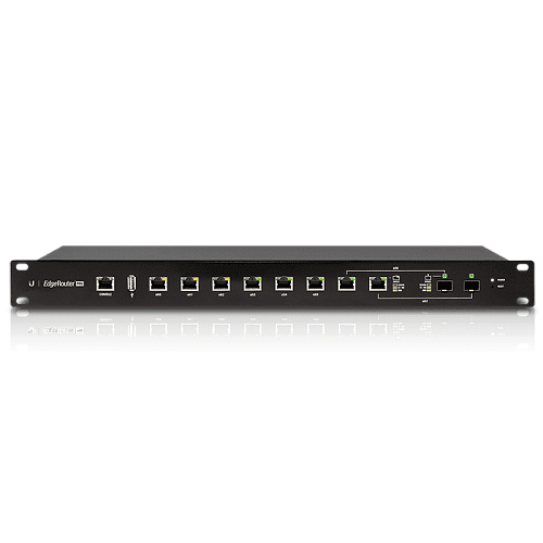 Ubiquiti EdgeRouter PRO является одним из представителей новой серии EdgeMax. Роутер имеет 8 гигабитных портов, один консольный порт, два порта SFP для подключения оптоволокна и один USB порт.