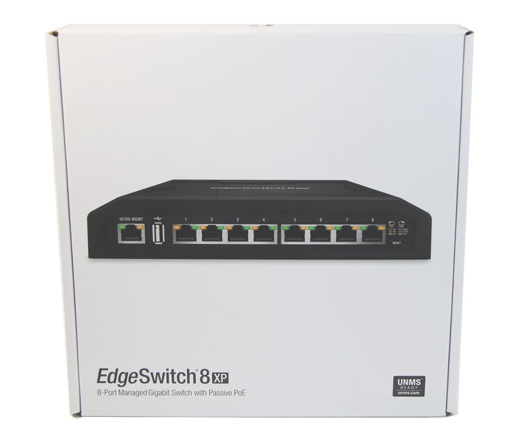 Свитч получил 8 гигабитных Ethernet портов, на каждом из которых возможно организовать раздачу питания PoE 24\48 v. Максимальная мощность передающаяся абонентскому оборудованию на каждом порту достигает 23 вт, при напряжении 48 v и до 11.5 вт при напряжении 24 v. Суммарная же мощность, которую обеспечивает Ubiquit EdgeSwitch 8 XP достигает 145 вт. Энергоснабжение коммутатора обеспечивается встроенным блоком питания с подключением к сети переменного тока 110/220 v. Помимо 8 Ethernet портов, Ubiquit EdgeSwitch 8 XP имеет так же USB 2.0 порт зарезервированный для использования в будущем и консольный порт предназначенный для доступа к интерфейсу управления.