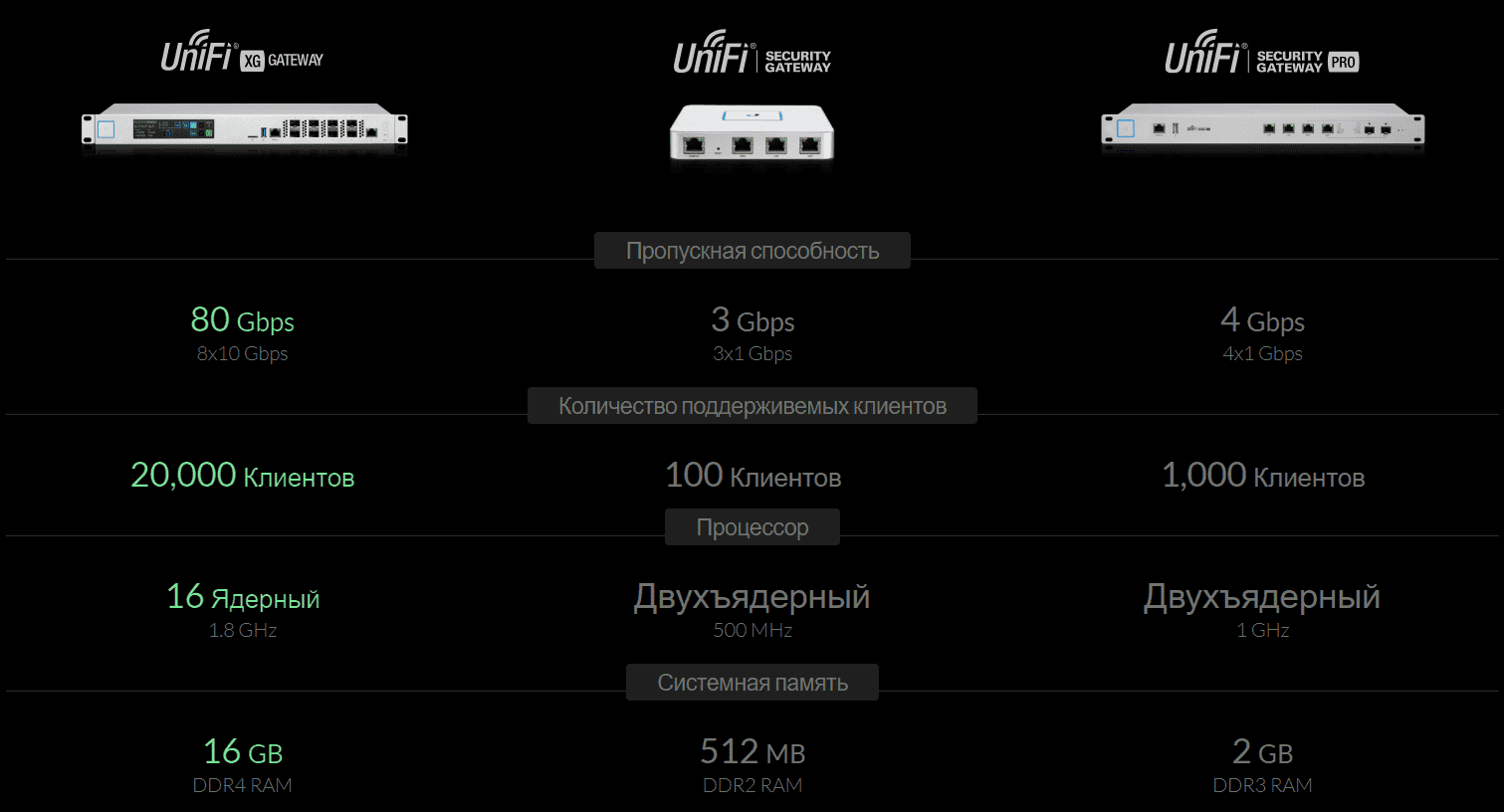 Маршрутизатор идеален для развертывания крупных сетей UniFi. Увеличенное количество сетевых портов, работающих на гигабитных скоростях позволяют подключить к UniFi Security Gateway XG множество устройств – как свитчей так и конечного пользовательского оборудования. Дополнительным плюсом к защите является наличие встроенного фаервола, при помощи которого можно блокировать нежелательные соединения. Помимо интерфейса Ethernet модель имеет так же и SFP порты, к которым можно подключать линии оптоволоконного типа. Так же имеется на борту устройства и порт USB.