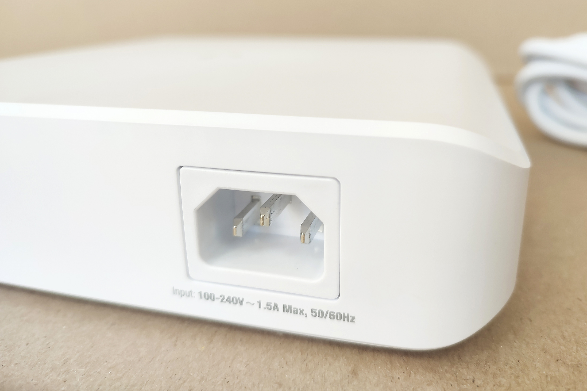 Энергоснабжение свитча осуществляется от сети 220v, для чего модель имеет интегрированный блок питания. Максимальная мощность, которая может передаваться абонентскому оборудованию суммарно составляет 45 ватт, при мощности блока питания в 60 ватт – весьма неплохой показатель (дельта в 15 ватт объясняется потреблением самого свитча).