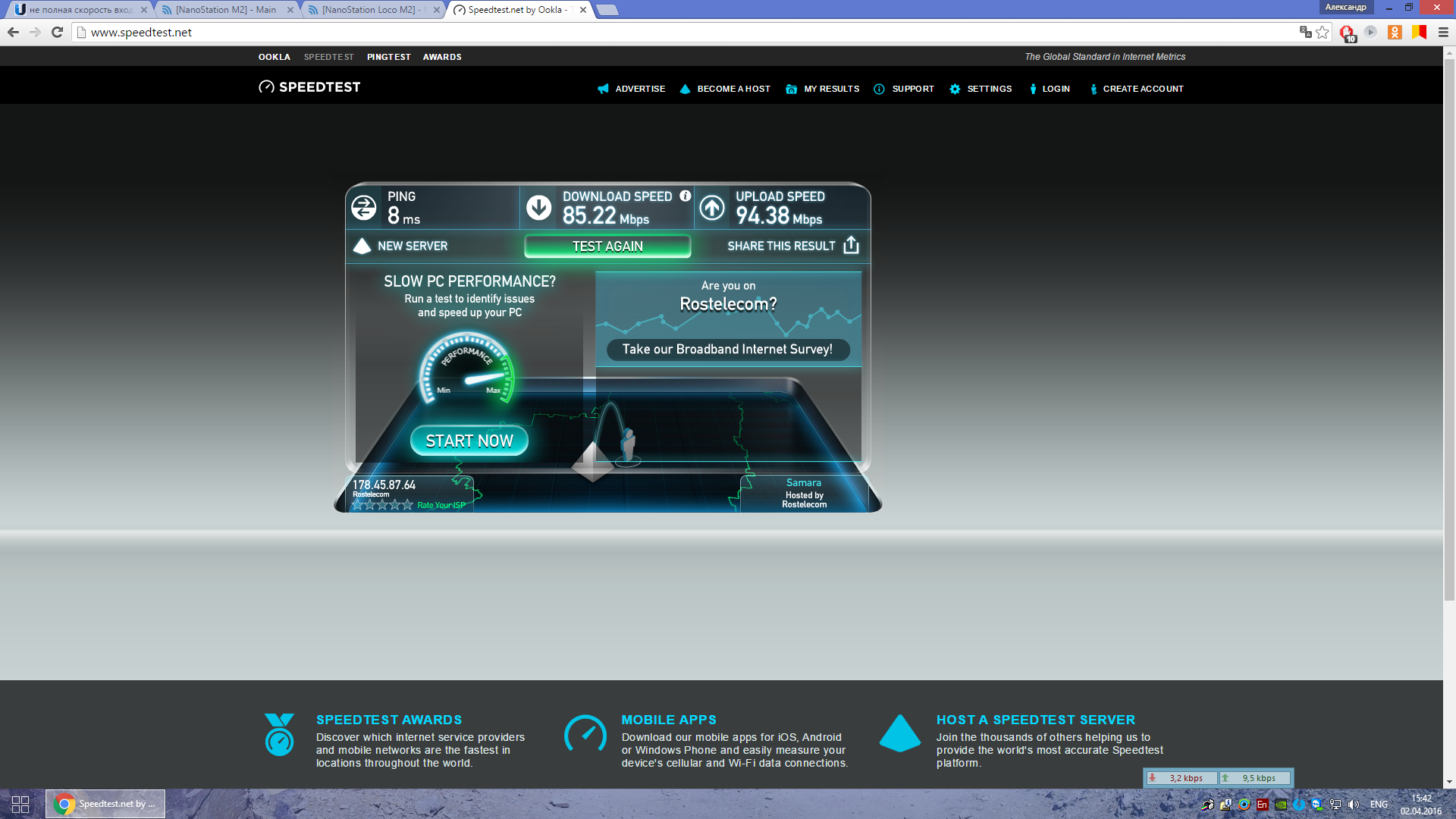 некоторые абоненты будут в 2-3 км прямой видимости, но у них буду ставить loco m2, а вот как связать например если в своем поселке буду подключать обычные маршрутизаторы, то частота 2350 не пойдет, наверное нужно будет российскую частоту ставить чтобы совместимость была?На 18dBm максимум и то если придется, у вас что клиенты в 2-10 км? И вообще объясните в чем жажда максимальной мощности? Вы что думаете чем мощней тем, скорость и все остальное лучше? А вот и наоборот! Чем мощней себя сигнал видит, тем сильней переотражение и тем сильней собираете шумы, а значит все хуже. На 5ггц видел как на максимальной мощности скорость была хуже до -60 выставили и на спид тесте в 2 раза скорость выросла.