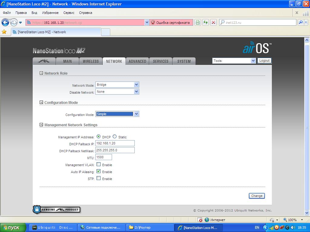 Всем хорошего вечера. Проконсультируйте по поводу настройки точки доступа , заранее прошу простить меня, я полный профан в этом. В квартире хочу развернуть WiFiсеть. Обычные роутеры не добивали, потому купил Ubiquiti NanoStation Loco M2. Получилось не с первого раза правда, подключить точку доступа к компу, но настроить не выходит никак. Интернет приходит в квартиру по кабелю. Скажите, что нужно сделать чтобы раздать интернет? Благодарю всех заранее.
