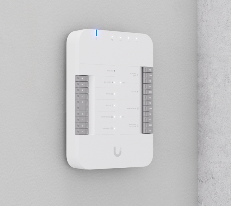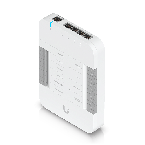 • Подключение к двум считывателям UniFi Access и двум камерам UniFi Protect или UniFi Protect Chime)