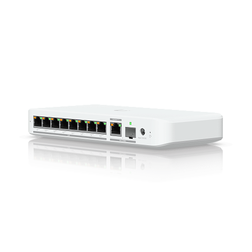 Гибкий 8-портовый коммутатор 2.5 GbE PoE++ с комбинированным портом 10 GbE RJ45/SFP+ для аплинка, который может питаться через PoE+++ или адаптер переменного тока*.