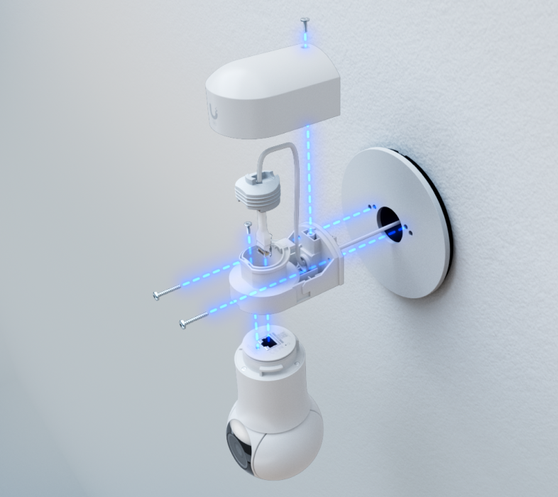Монтажная пластина, предназначенная для подключения камер UniFi Protect к различным типам установочных и распределительных коробок.
