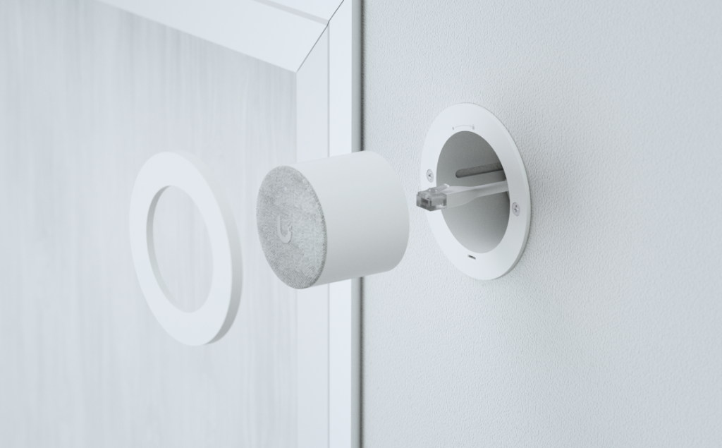 Динамик с поддержкой PoE plug-and-play, предназначенное для сопряжения с дверным звонком UniFi или хабом доступа к дверям.