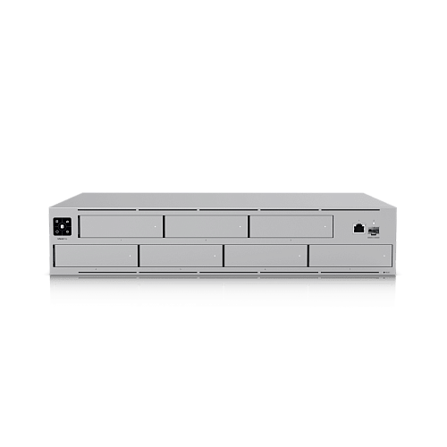 UniFi UNAS Pro — это высокопроизводительное сетевое хранилище данных (NAS) для корпоративного использования, обеспечивающее удобное и безопасное хранение и обмен файлами. Устройство поддерживает до 7 дисков формата 2.5"/3.5" (HDD/SSD), что делает его гибким решением для различных задач.