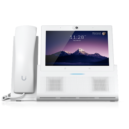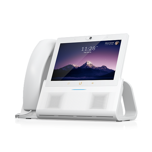 Настольный премиум-смартфон с 7-дюймовым сенсорным экраном, поддержкой PoE+ и встроенной камерой с шторкой конфиденциальности. Оснащён стереодинамиками, NFC, Wi-Fi и Bluetooth для удобной связи и интеграции с экосистемой UniFi.