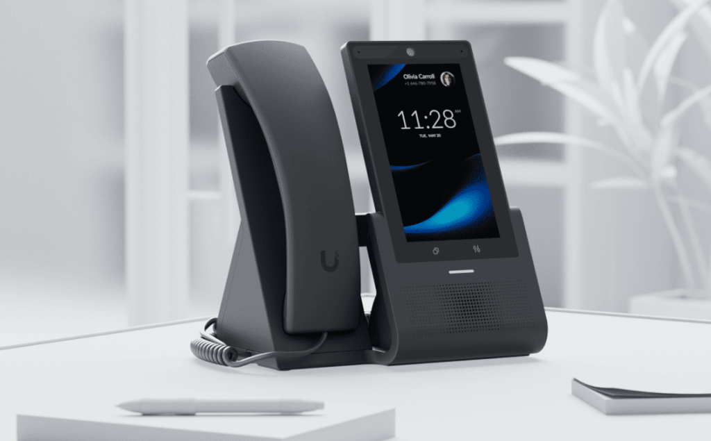 Настольный смартфон нового поколения для UniFi Talk с 5-дюймовым сенсорным дисплеем и бесшовной интеграцией с приложениями UniFi.