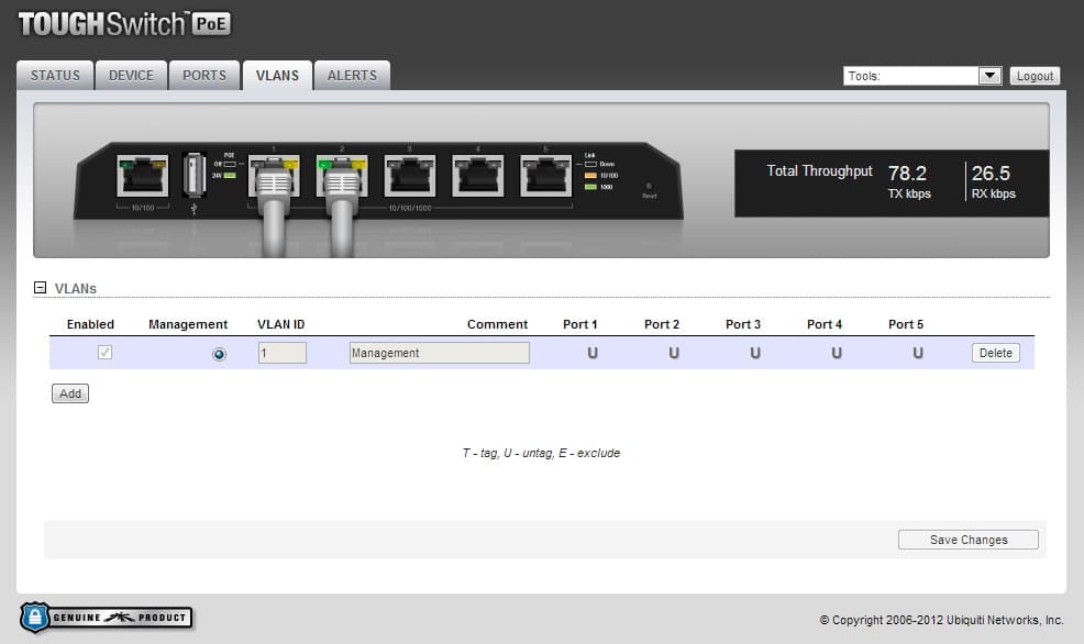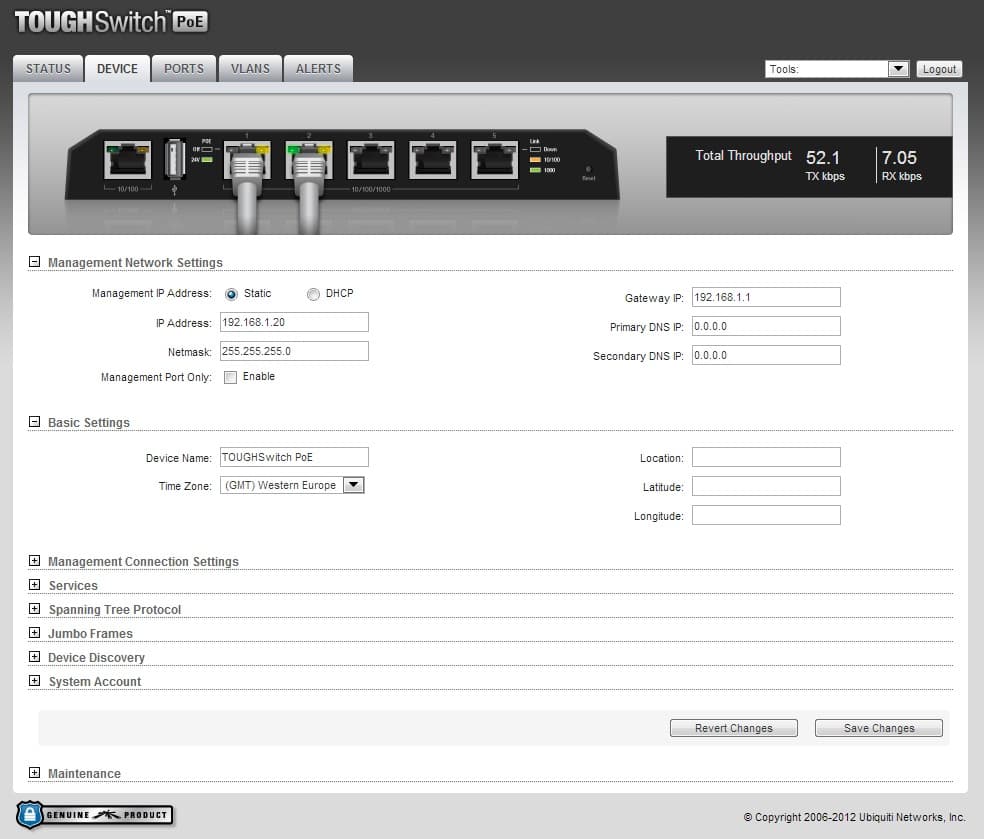 Новым параметром, относительно устройств Airmax серии, является графа management port only. Система ToughSwitch содержит два основных чипа: процессор управления и фабрику коммутации. При настройках по умолчанию эти процессоры обмениваются данными, то есть, возможно управление коммутатором через любой порт. Если данную опцию включить, управление можно будет осуществлять только через management порт системы.