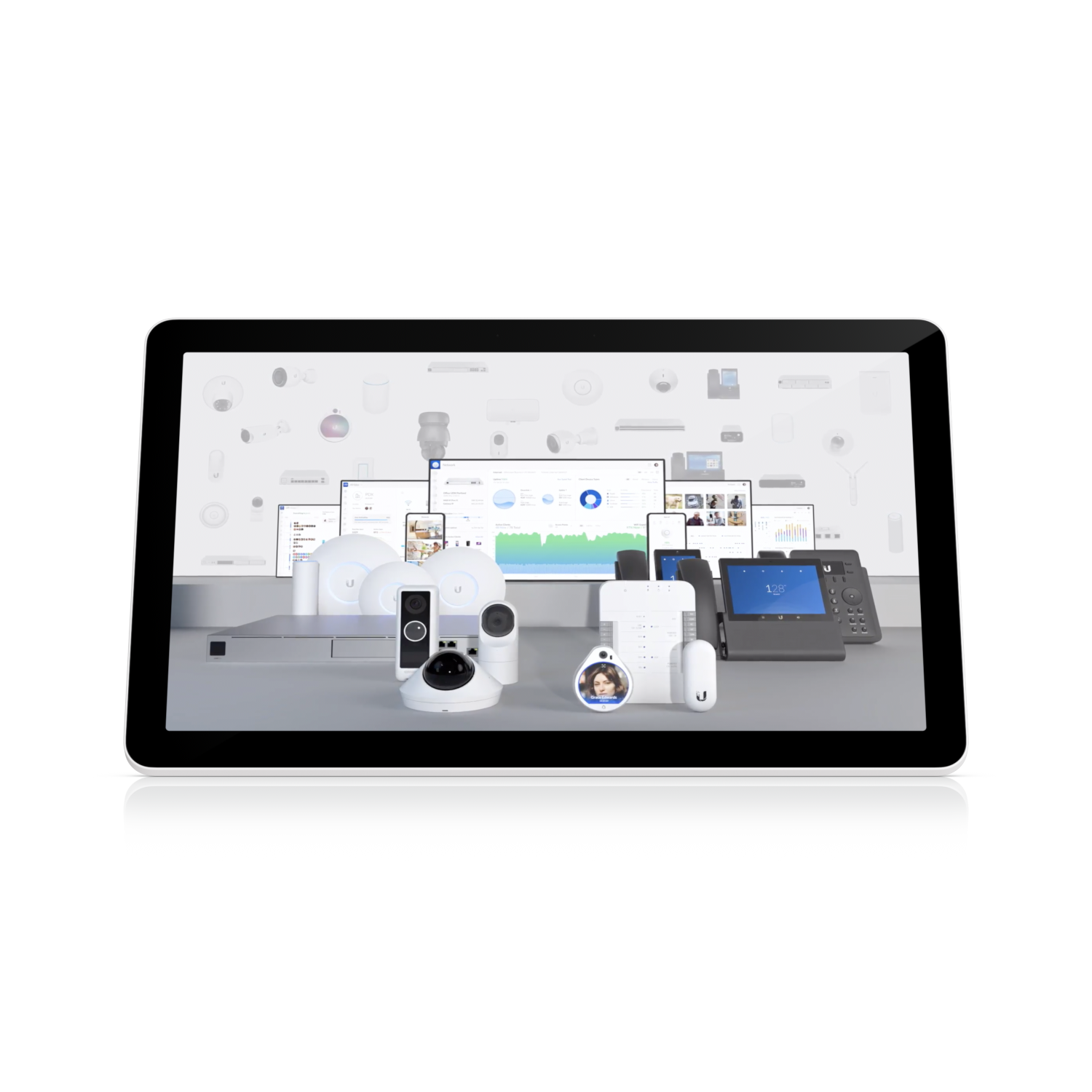 27-дюймовый сенсорный экран Full HD PoE, разработанный для UniFi Connect.