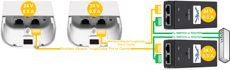 Вариант A. — (Стандартный) Два устройства, два PoE (требуется свитч или роутер).
