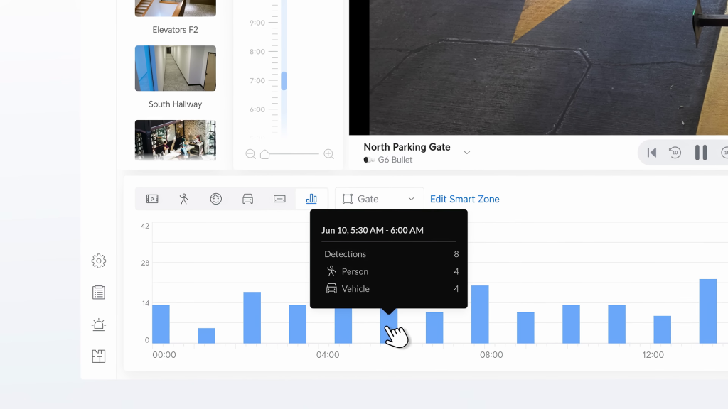 Улучшенная шкала времени и просмотр: графики активности, фильтрация по зонам и параллельный просмотр записей с разных камер.