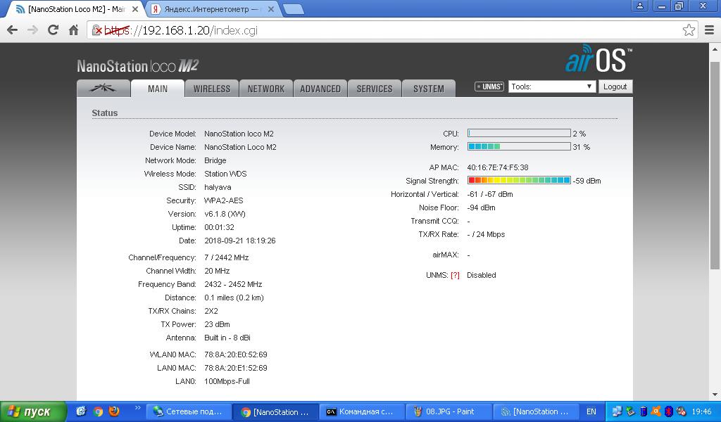 Ситуация следующая: пользуюсь соседским Wi-Fi на расстоянии 100м в прямой видимости (у него точка доступа на окне, у меня приемник тоже на окне, только снаружи). До этого пользовался обычным бытовым маршрутизатором (не буду писать бренд здесь, но это довольно дешевая модель) в режиме клиента. Скорость передачи выходила около 7 Мбит (туда/обратно). В целом все устраивало, кроме того, что негерметичный бытовой приемник стоит снаружи и я не был уверен, что зимой с ним не будет проблем.