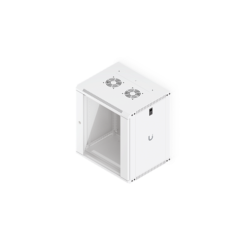Ubiquiti 12U Rack Cabinet — настенный серверный шкаф высотой 12U с дверью из закалённого стекла. Поставляется полностью собранным, оснащён встроенным вентилятором, съёмными запираемыми боковыми панелями и удобными кабельными вводами. Подходит для размещения 19-дюймового сетевого и серверного оборудования в офисах и небольших серверных помещениях.
