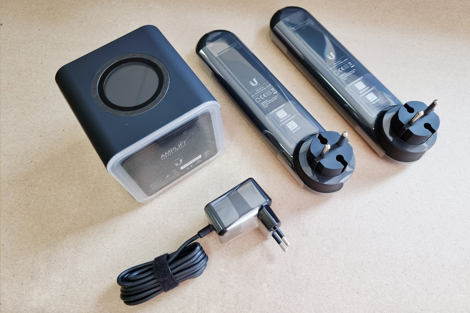 Для соединения с абонентским оборудованием по кабелю роутер AmpliFi Gamer’s Edition имеет 4 гигабитных Lan порта, и порт Wan через который производится подключение к внешней сети. Отдельно следует отметить простоту настройки системы. Для этого нет необходимости прокладывать витую пару, крепить к стене репитеру и производить другие манипуляции по монтажу. Достаточно лишь подключить включить AmpliFi Mesh Router в сеть, подключить в порт Wan кабель провайдера и подключить ретрансляторы в розетки 220v, которая и станет местом их размещения.
