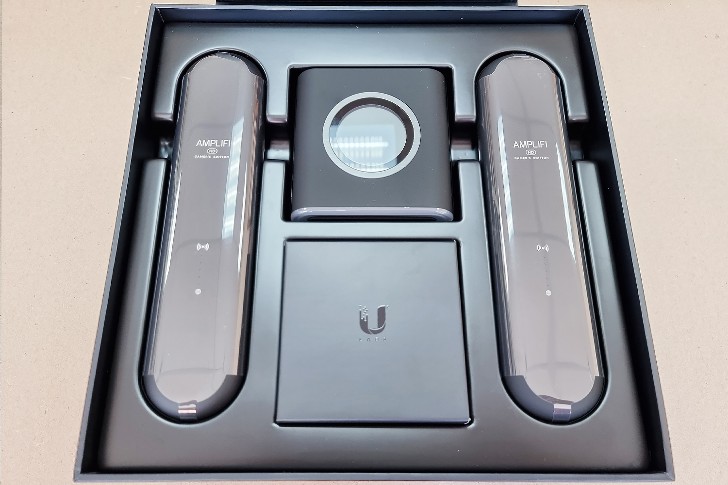 Внешний вид новинки получился по настоящему «геймерским» Главные изменения дизайна по сравнению с базовой версией AmpliFi HD коснулись ретрансляторов MeshPoint, которые превратились в стильные обтекаемые капсулы, как будто сошедшие из какой-то футуристической компьютерной игры. Сам Маршрутизатор AmpliFi Mesh Router изменил лишь цвет, став черным, в остальном различий вида нет.