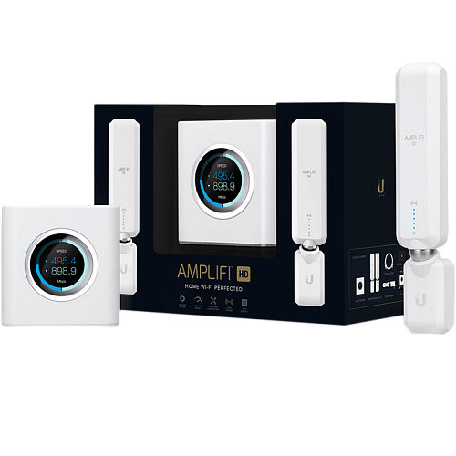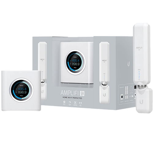 AmpliFi LR состоит из роутера, который является одновременно и базовой станцией, и двух независимых усилителей сигнала. Базовая станция имеет весьма оригинальный дизайн и представляет из себя куб, лицевая сторона которого оснащена ЖК дисплеем, на который выводится информация о состоянии устройства и скорости текущего соединения. Немаловажно, что радиочасть AmpliFi LR способна работать в двух диапазонах 2.4 и 5 ГГц, благодаря чему обеспечена совместимость с более ранними ревизиями стандарта WiFi 802.11 b\g\n.