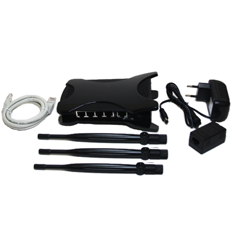 Для подключения проводной сети роутер имеет 4 10/100 LAN порта, а также WAN порт для соединения с сетью провайдера. Это стандартный «джентльменский» набор, которым обладает большинство WiFi роутеров, за исключением самых компактных моделей. В комплект поставки PowerKing Triple входит все необходимое для работы — блок питания, патч-корд, 3 съемные антенны 5 dBi и диск с ПО.