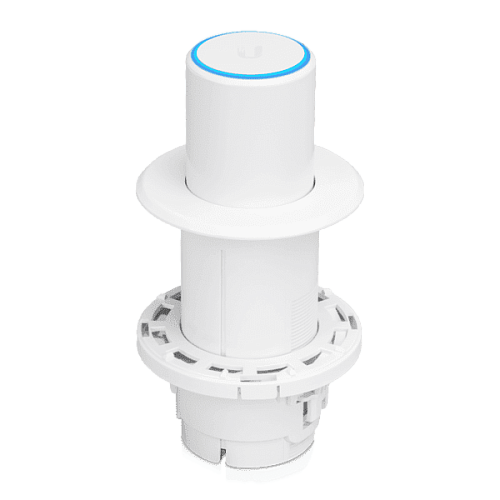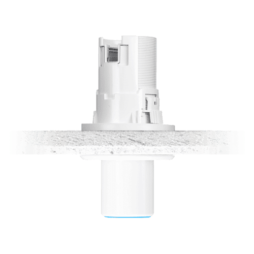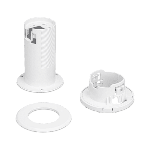 Выдвижной скользящий кронштейн для монтажа UniFi FLEX HD с защелками и фиксирующей резьбой делают установку точки доступа максимально удобной. Лицевая сторона кронштейна закрывается магнитной декоративной накладкой диаметром 85 миллиметров, которая полностью закрывает все элементы крепежа.