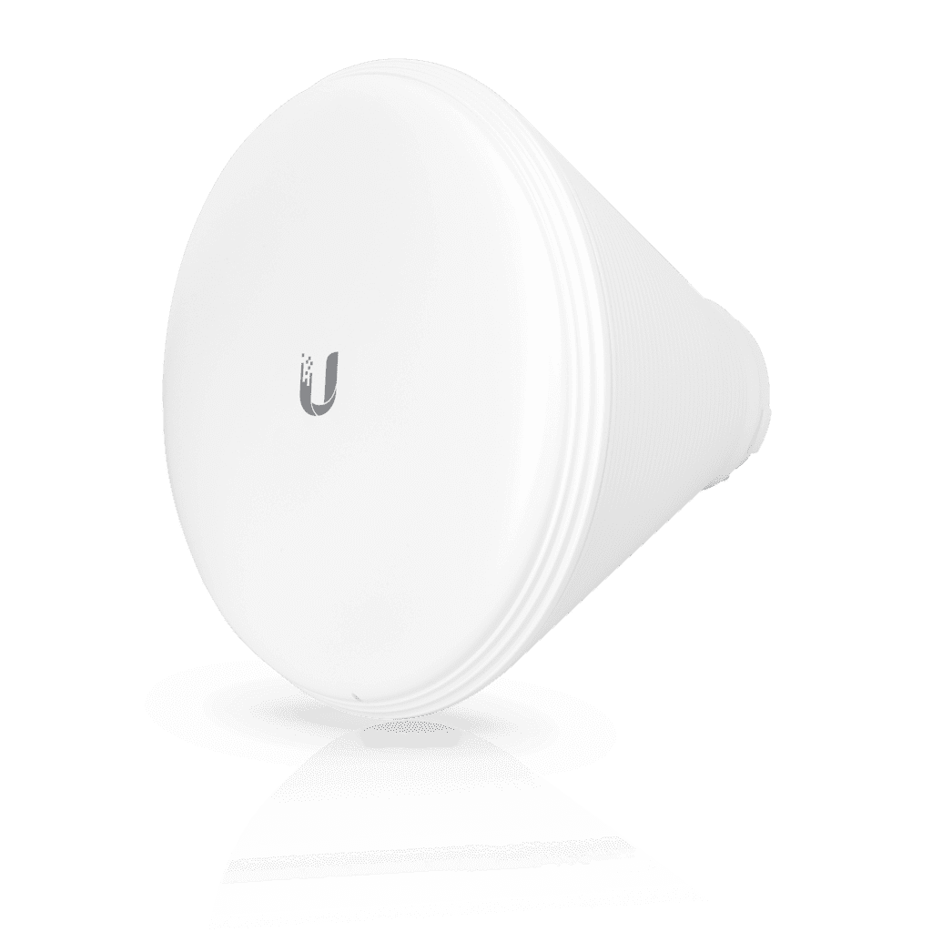 Антенна выполнена по схеме симметричного рупорного излучателя. Благодаря кропотливой работе инженеров Ubiquiti Networks по математическому просчету схемы, а так же длительным испытаниям удалось добиться практически идеальных показателей радиоизоляции – паразитная боковая засветка и обратное излучение при использовании Horn 5-45 отсутствуют практически полностью.
