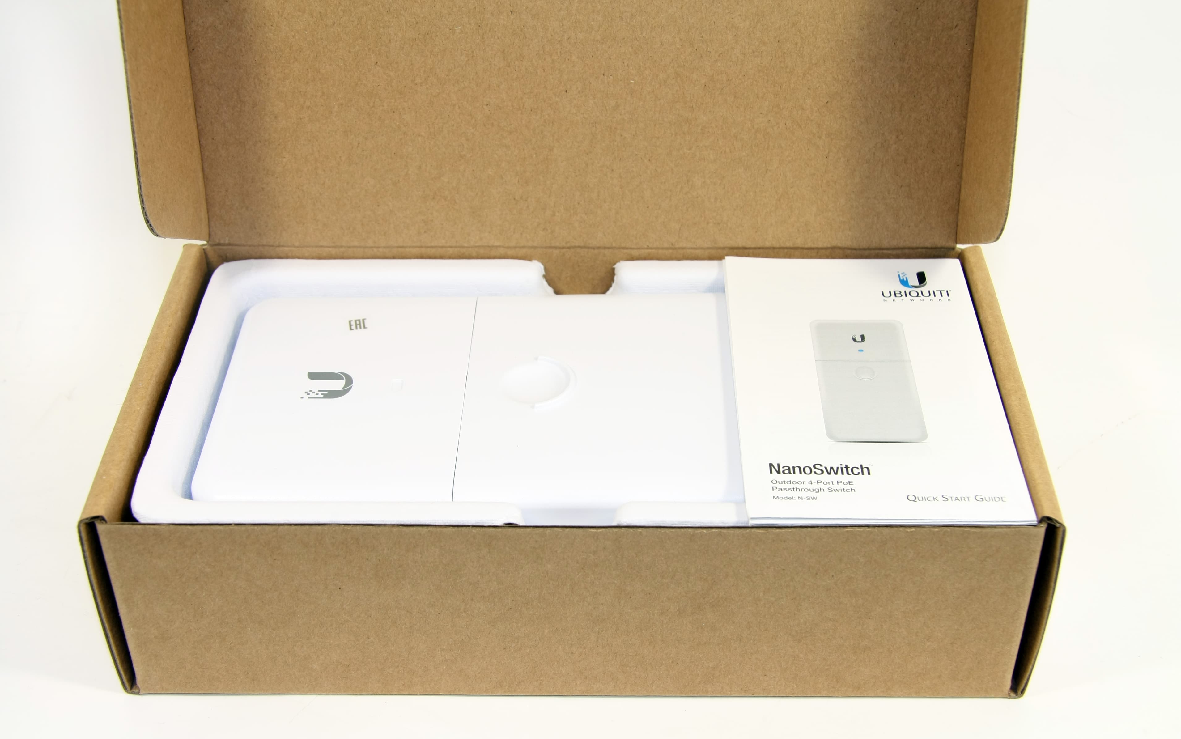 Внешне свитч сильно напоминает другое популярное устройство Ubiquiti - Fiber Poe. Та же компоновка корпуса изготовленного из стойкого к УФ излучению поликарбоната, похожие размеры, разнится лишь назначение устройств. Учитывая что Fiber Poe зарекомендовал себя с самой лучшей стороны в самых суровых погодных условиях, не приходится волноваться и за NanoSwitch.