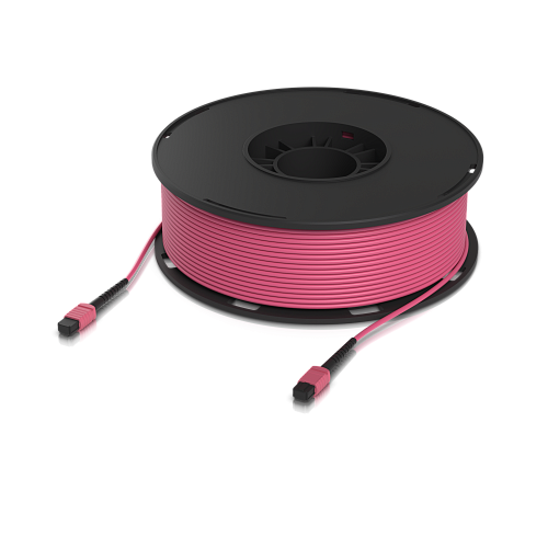 Внутренний многомодовый оптоволоконный патч-кабель стандарта OM4 с разъемами MPO-12 Type B UPC, предназначенный для 100G-приложений.