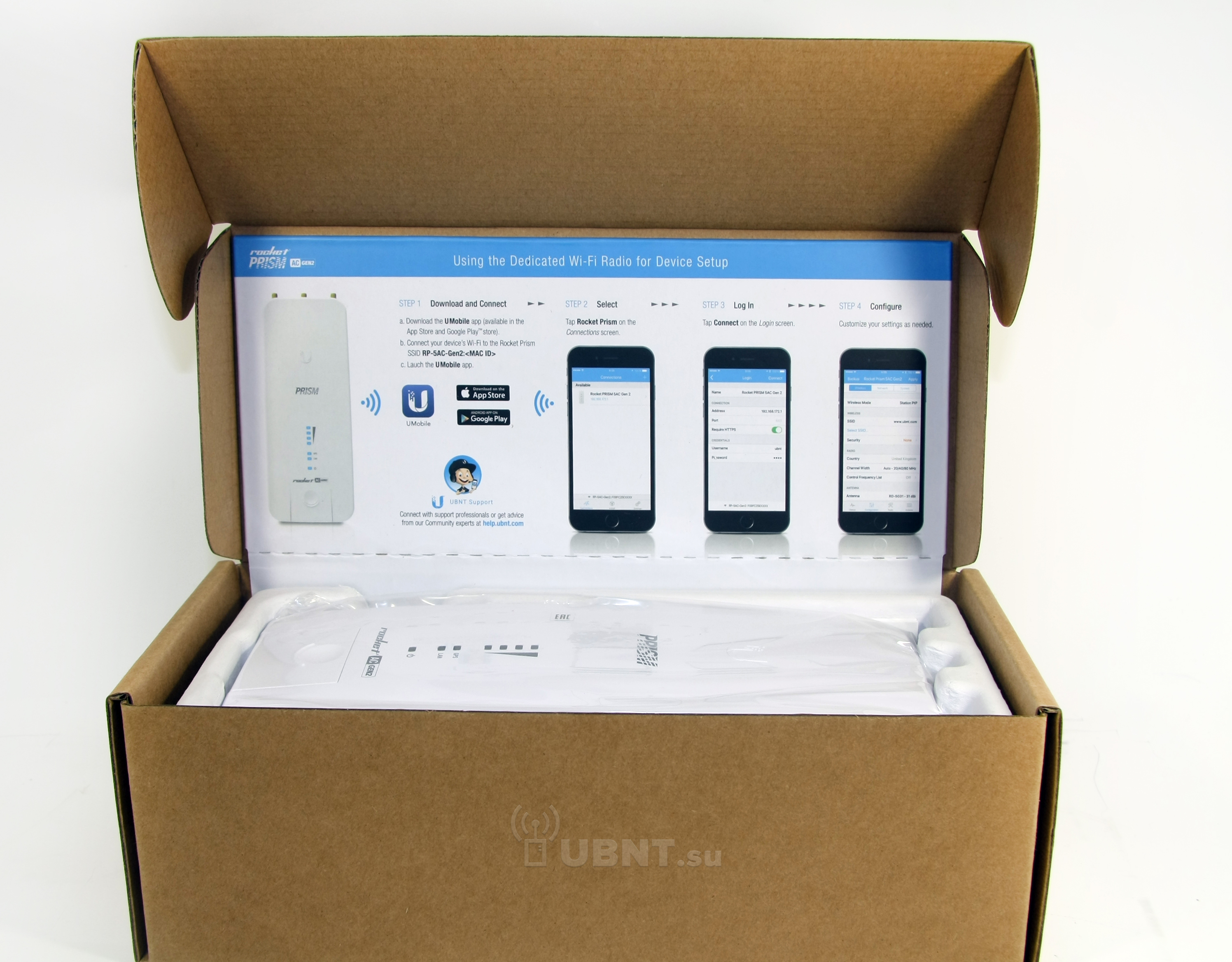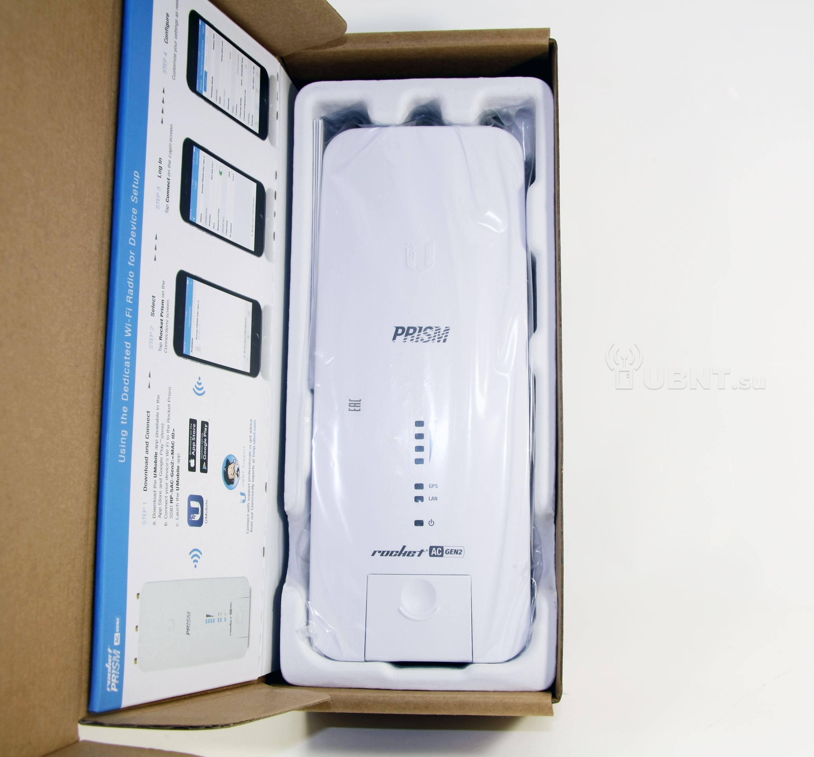 Максимальная скорость передачи данных составляет более 500 мб/сек, что является одним из лучших показателей в классе. При этом устройство является весьма компактным, герметичный всепогодный корпус Rocket AC AirPrism имеет длину всего в 23 см при ширине в 9 см. Несмотря на компактность, точка доступа имеет высокую мощность радиомодуля, которая составляет 27 dBm. Для подключения к сети точка доступа оснащена гигабитным Ethernet портом, который также отвечает за энергоснабжение, используя технологию PoE.