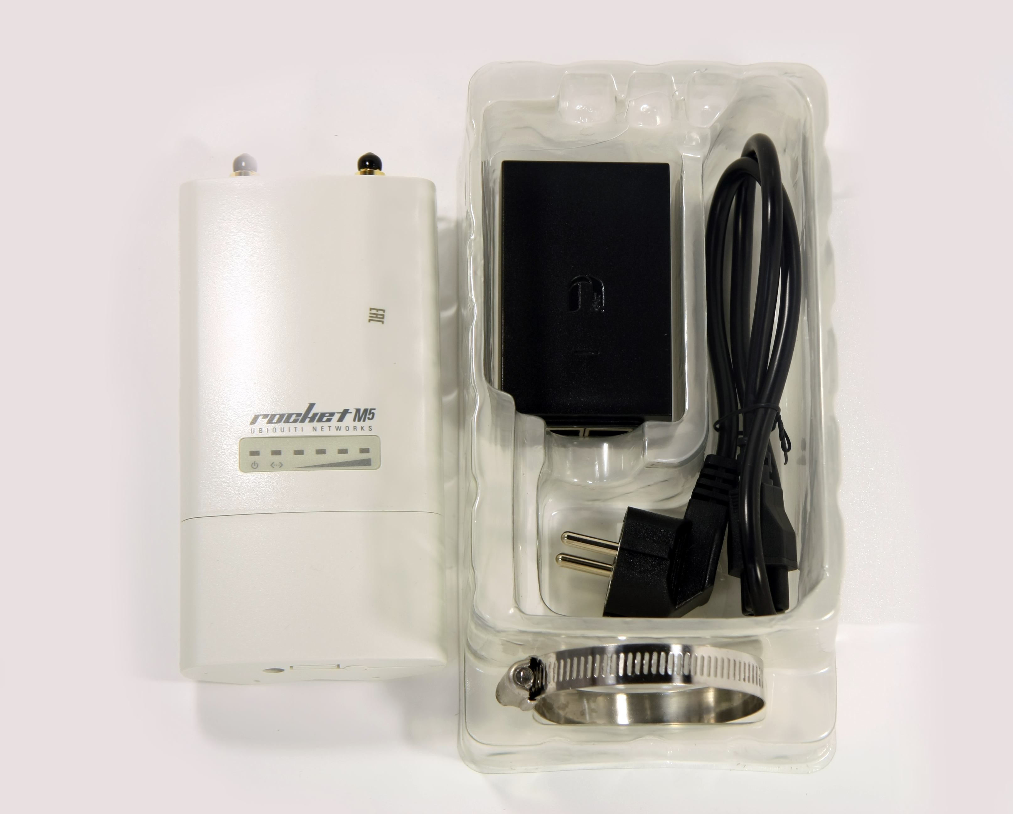Мощность радиомодуля Rocket M5 составляет до 27 dBm в зависимости от выбранного режима работы. Поскольку точки доступа Rocket не имеют встроенных антенн, инженеры Ubiquiti разработали для них несколько серий внешних антенн. Это всенаправленные антенны AirMax Omni, секторные AirMax Sector и узконаправленные RocketDish с параболическим отражателем. Выбор модели зависит от использования точки доступа — для дальнобойных беспроводных мостов необходимо выбирать узконаправленные, а для базовых станций подойдут секторные либо всенаправленные антенны.