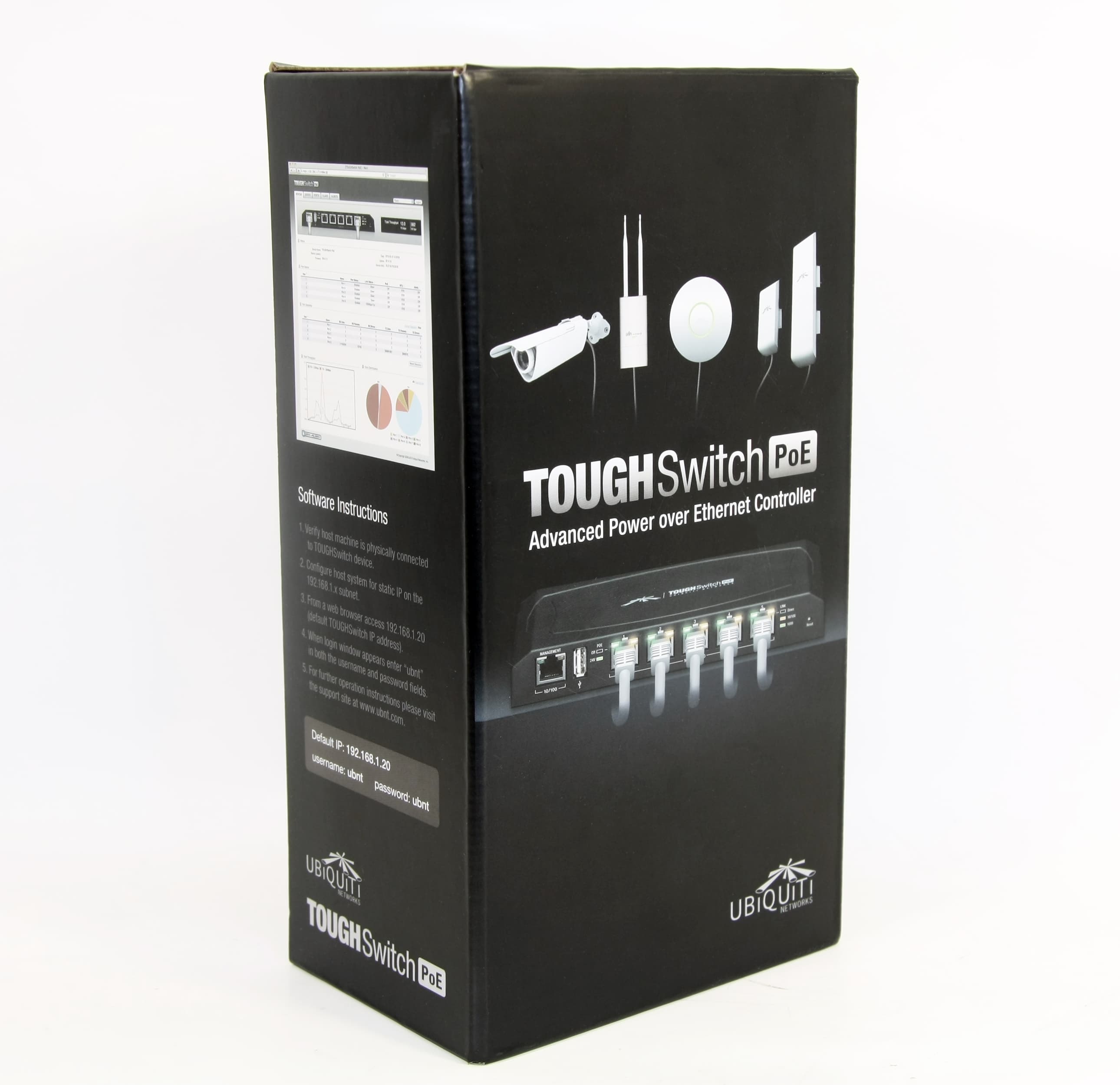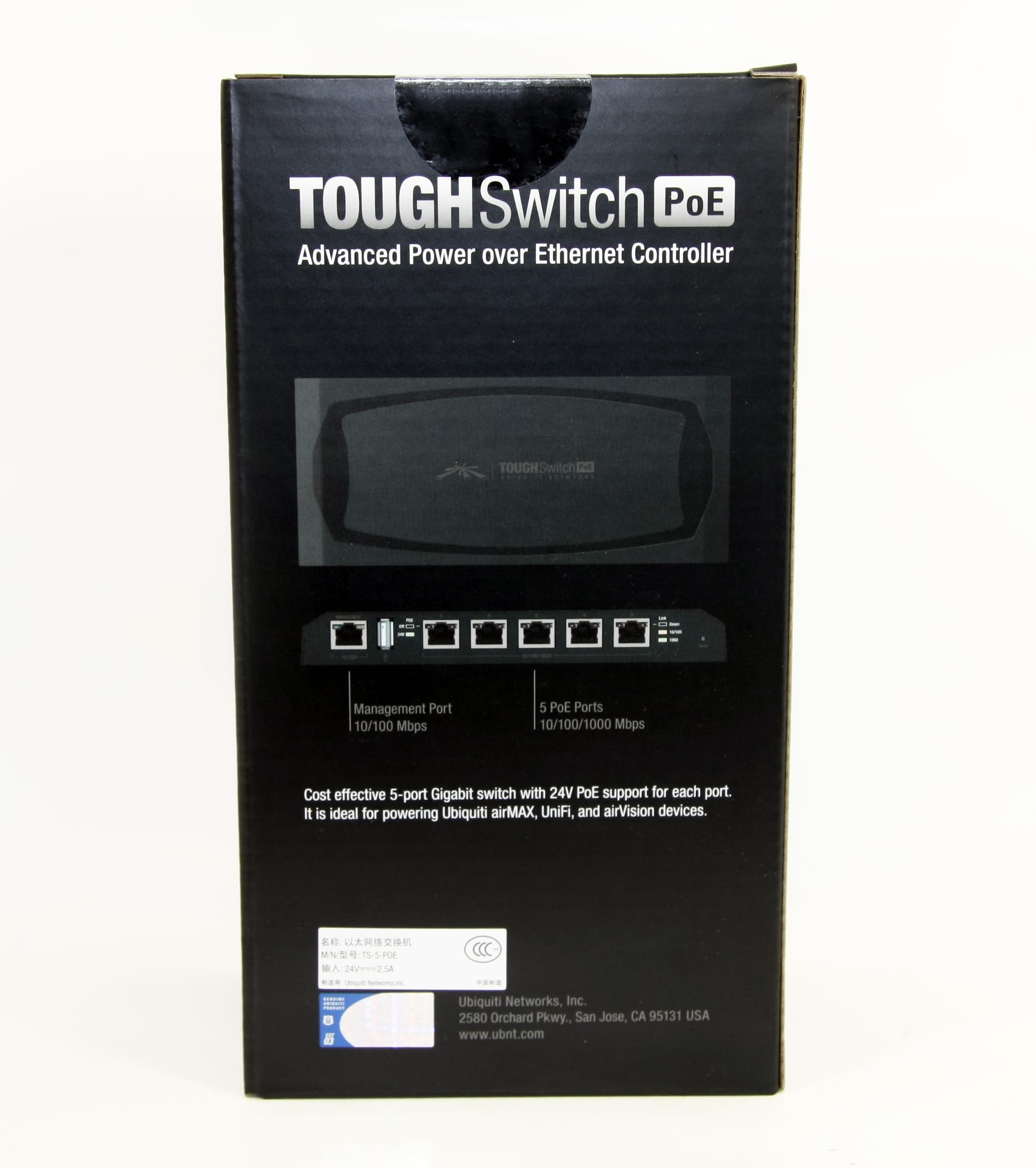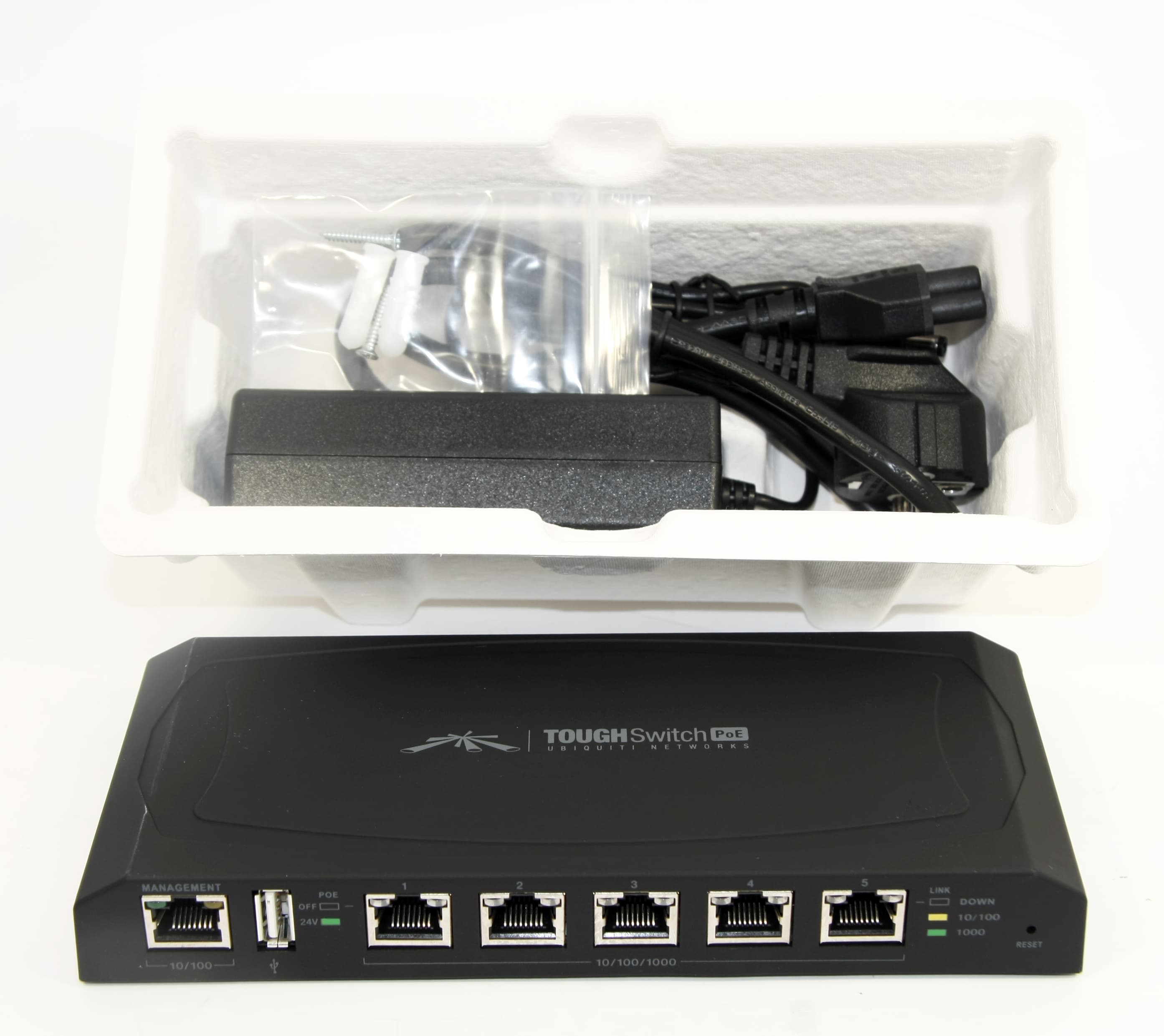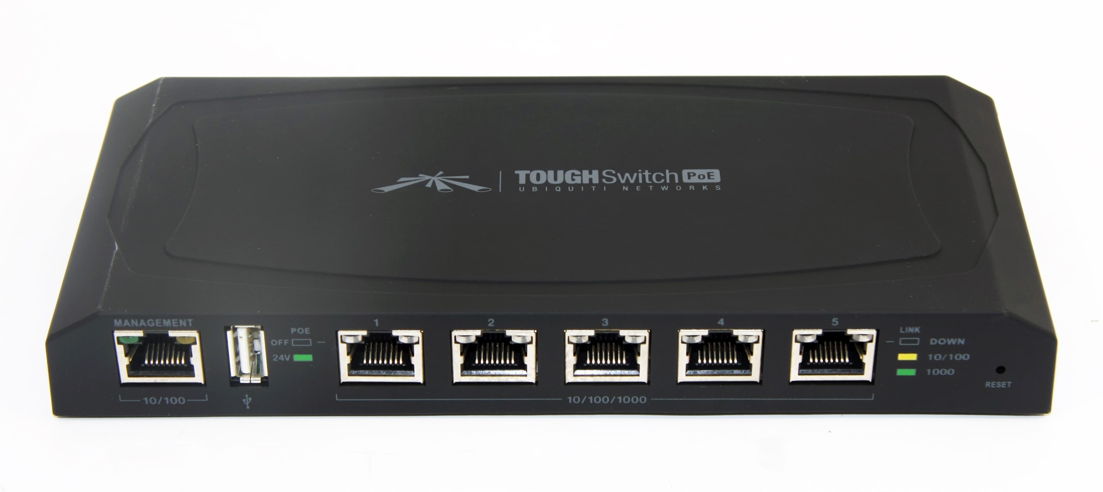 Ubiquiti TOUGHSwitch PoE имеет 5 гигабитных портов с поддержкой PoE напряжением 24 В. Блок питания — 60 Вт.