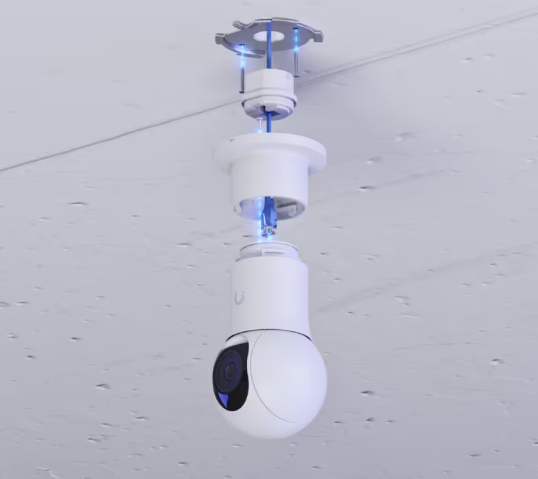 Монтажный набор G5 PTZ Surface Mount UACC-G5-PTZ-SM совместим с IP-камерой G5 PTZ и предлагает разнообразные способы монтажа. С этим набором камеру можно установить на потолок без необходимости штробления или вырезания проемов в панели. Ввод кабеля возможен как по поверхности потолка, так и скрытым способом с обратной стороны панели.