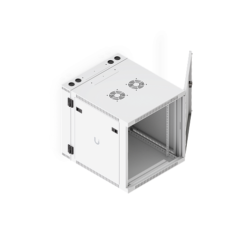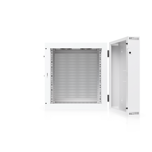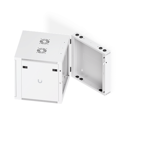 Ubiquiti UACC-Rack-12U-Wall-SW-P — настенный шкаф формата 12U, поставляемый полностью собранным. Оснащён передней дверью из закалённого стекла, задней распашной металлической дверью, встроенными вентиляторами, съёмными запираемыми боковыми панелями и удобными кабельными вводами. Подходит для размещения 19-дюймового сетевого и серверного оборудования в офисах, техпомещениях и небольших серверных.