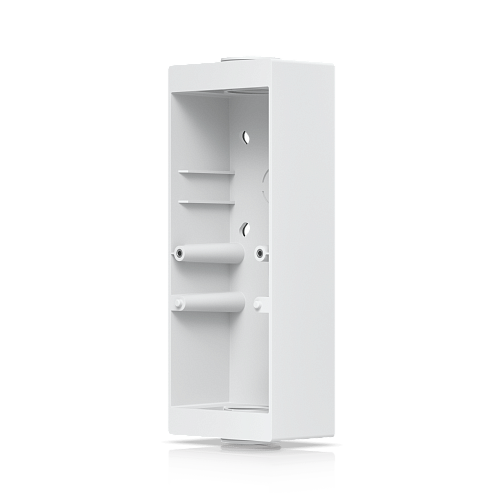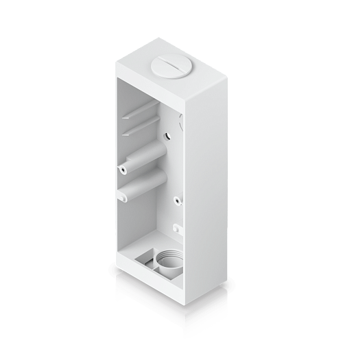 Использование этой коробки исключает необходимость штробления монолитных стен или вырезания отверстий в стеновых панелях. Для установки считывателя или звонка под углом без штробления можно дополнительно приобрести угловую монтажную коробку Reader Pro Angle Mount (артикул UACC-Reader-Pro-AM-W).