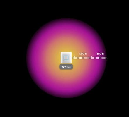 На борту Ubiquiti UniFi AP AC интегрировано три 2,4 ГГц и три 5 ГГц MIMO-антенны. Ubiquiti UniFi AP AC позволяет одновременно использовать обе частоты, обеспечивая таким образом производительность канала на уровне 1750 Мб/с. Каждая точка имеет радиус покрытия около 120 метров.