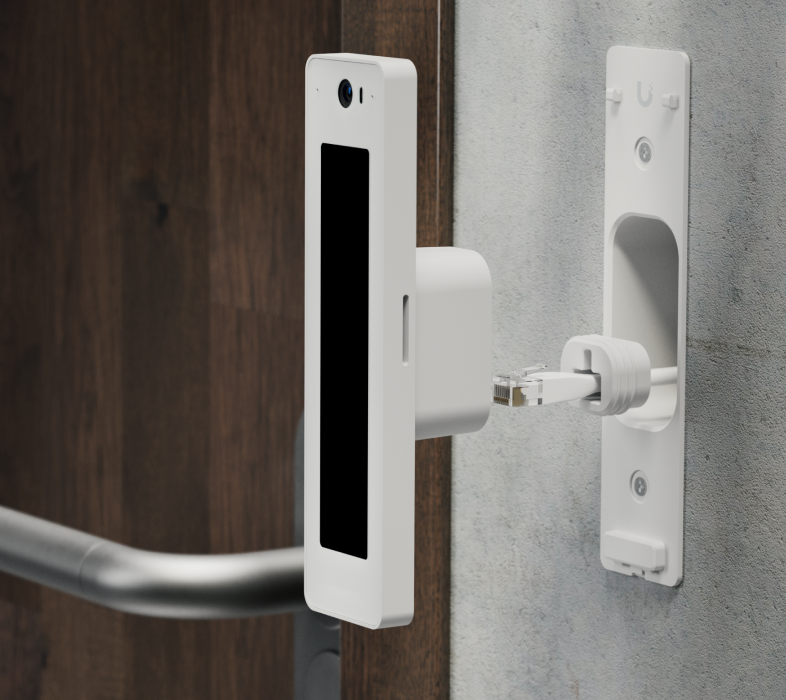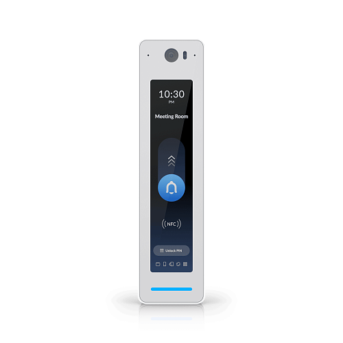 - Разблокировка с помощью NFC-карты, PIN-кода, мобильного приложения UniFi Identity, распознавания лица и Touch Pass