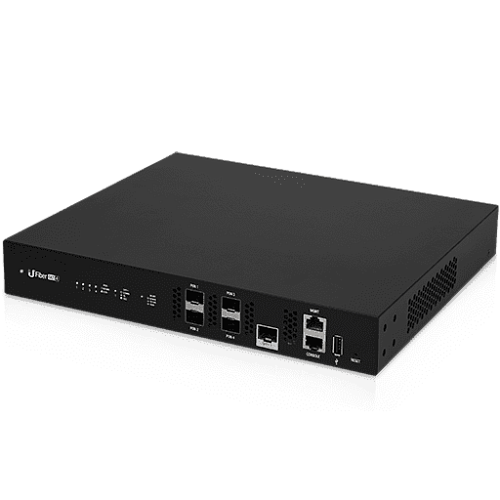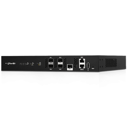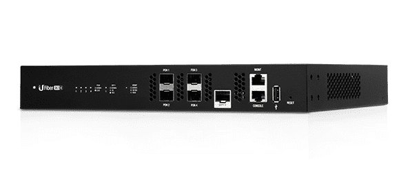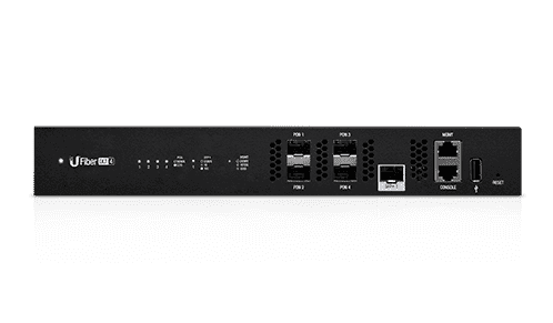 Пропускная способность GPON OLT SFP портов не симметричная, и достигает 2.44 гбит/Сек на передачу и 1.24 гбит/сек на прием. Для соединения с сетью UFiber 4 OLT имеет десятигигабитный SFP+ порт, а так же дополнительные порты внутриполосного и внеполосного управления. При необходимости можно использовать консольный порт RG 45.