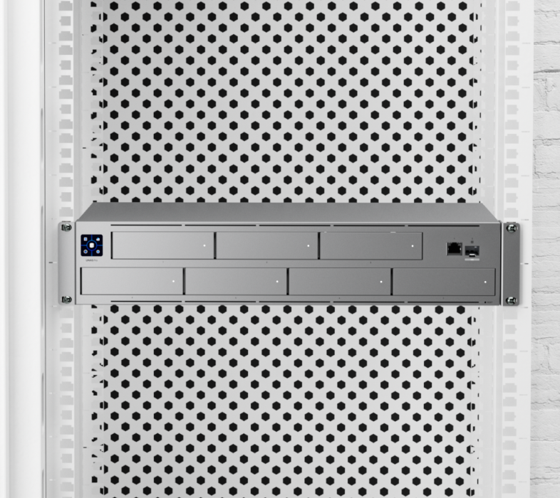 UniFi UNAS Pro — это высокопроизводительное сетевое хранилище данных (NAS) для корпоративного использования, обеспечивающее удобное и безопасное хранение и обмен файлами. Устройство поддерживает до 7 дисков формата 2.5"/3.5" (HDD/SSD), что делает его гибким решением для различных задач.