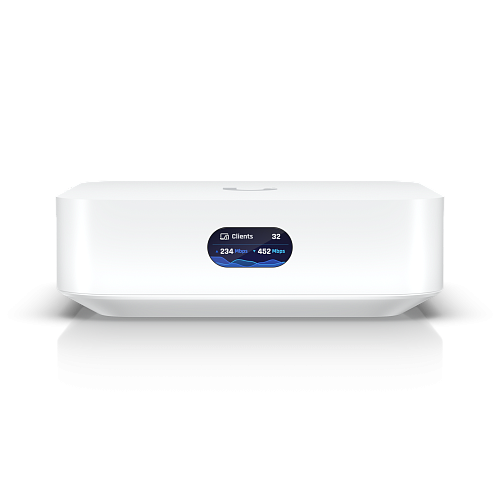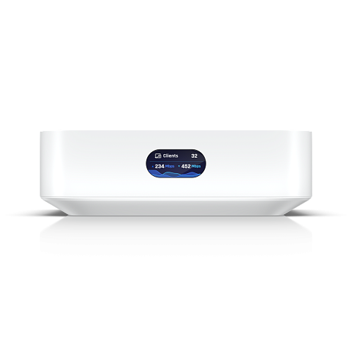 Несмотря на свои небольшие размеры (менее четырех дюймов в квадрате и чуть более одного дюйма в высоту), UX обладает множеством функций. В нем есть два гигабитных Ethernet-порта (WAN и LAN) и встроенный Bluetooth-радиомодуль для легкой интеграции через приложение UniFi. Точка доступа Wi-Fi 6 обеспечивает возможности многопользовательского MIMO 2×2. К тому же на передней панели расположен удобный индикатор LCM, который показывает важную информацию, такую как пропускная способность и количество подключенных устройств.