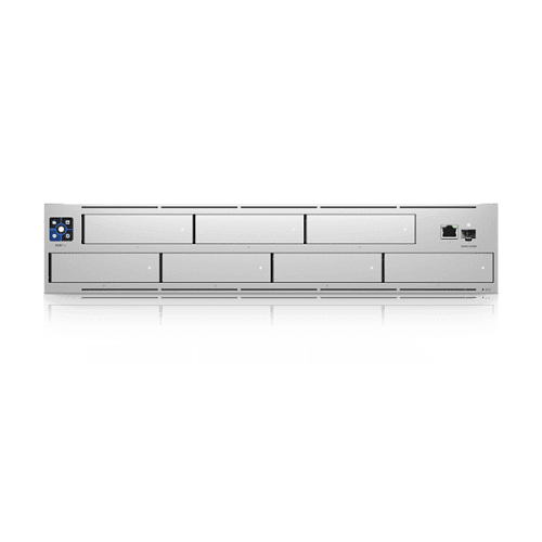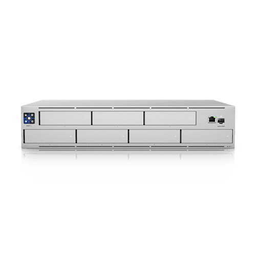 UniFi Protect Network Video Recorder Pro объединяет возможности программного обеспечения UniFi Protect с сетевым видеорегистратором масштабируемым до 7 жестких дисков. Видеорегистратор UniFi Protect Network Video Recorder Pro поддерживает до семи накопителей SSD, или HDD, настраиваемых в надежную, отказоустойчивую систему хранения в конфигурации RAID 1, или RAID 5. Сенсорный экран 1,3" для удобства управления. Дополнительные возможности портов 10G SFP+ и Gigabit RJ45 для передачи видео в локальной сети с минимальными задержками. Монтаж в стандартную стойку 19", высота 2U. Порт подключения резервного источника питания UniFi SmartPower Redundant Power System для защиты от выхода из строя встроенного блока питания, или сбоев сети электроснабжения.