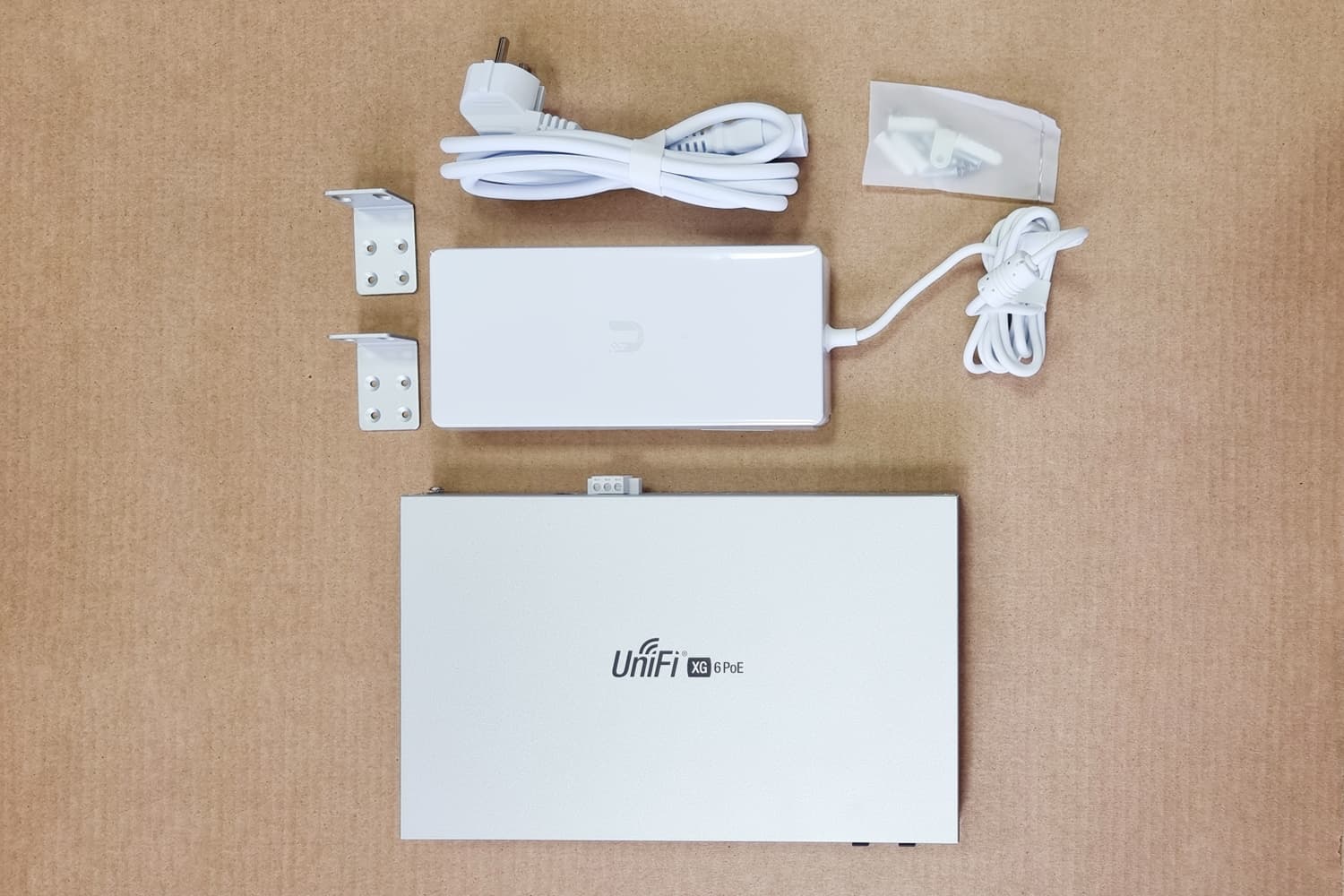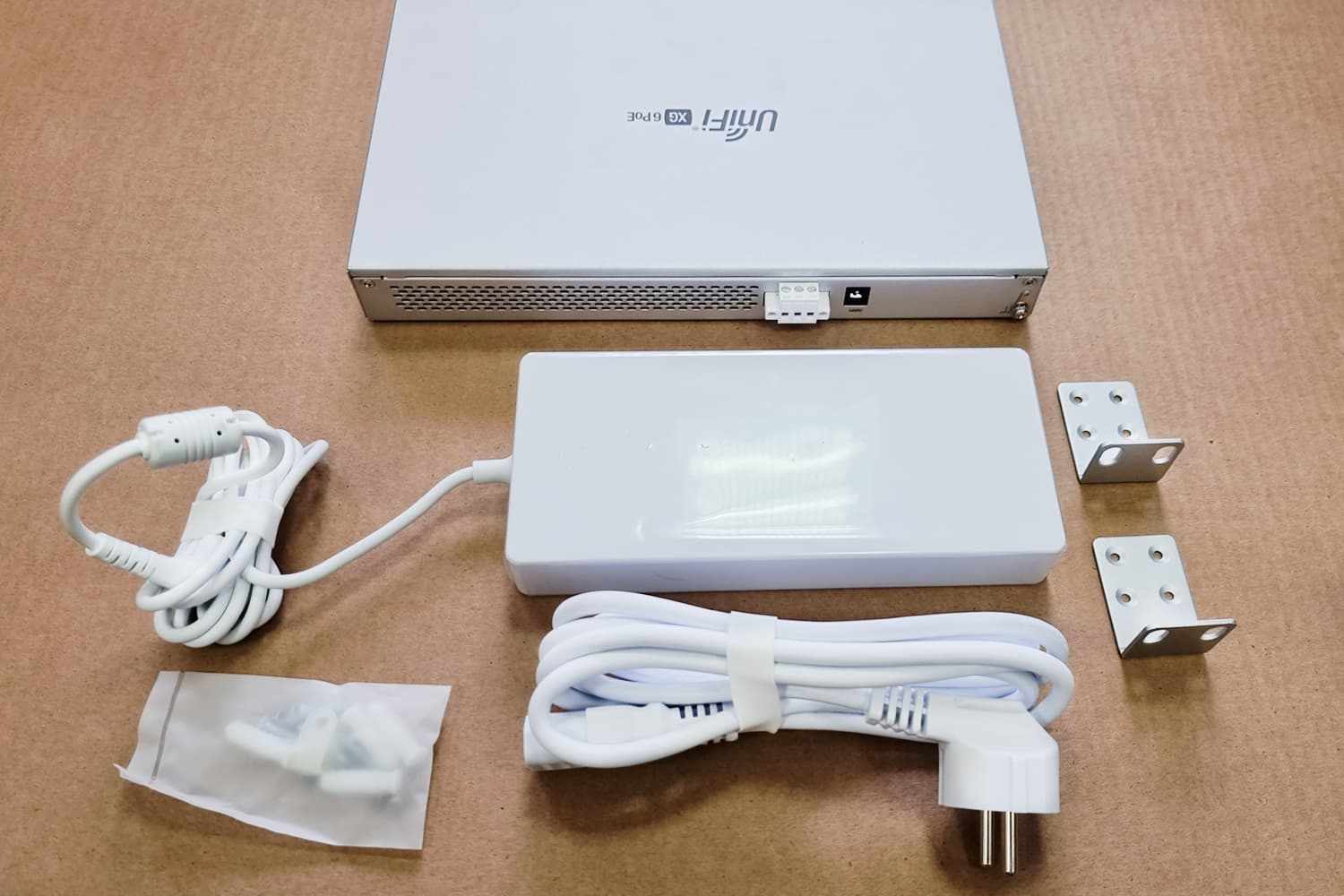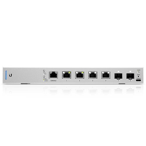 Традиционно для серии US-XG-6POE оснащен светодиодной индикацией состояния портов. Бросив беглый взгляд на устройство можно быстро оценить состояние соединений, наличие или отсутствие активности на любом интерфейсе, а также скорость установленного соединения. Питание UniFi Switch XG 6POE может осуществляться как через клеммную колодку, так и с помощью поставляющегося в комплекте адаптера 54В/3.88А.