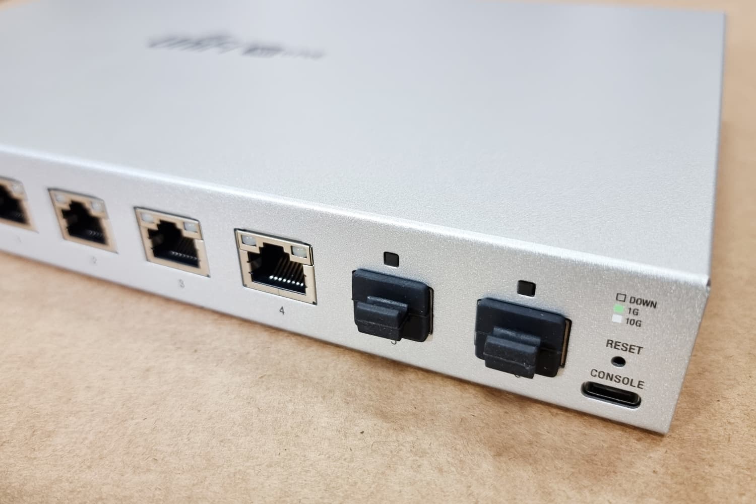 Свитч относится к линейке компактный решений, и имеет всего лишь 6 портов – два из которых предназначены для подключения линий оптоволокна по стандарту SFP+, со скоростью передачи данных до 10 гбит/сек , а другие 4 работают с витой парой.