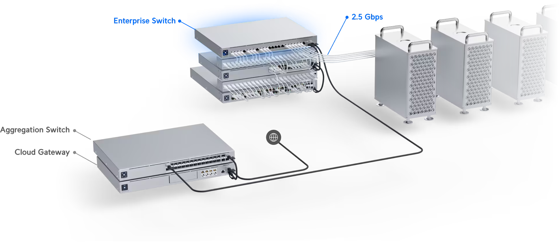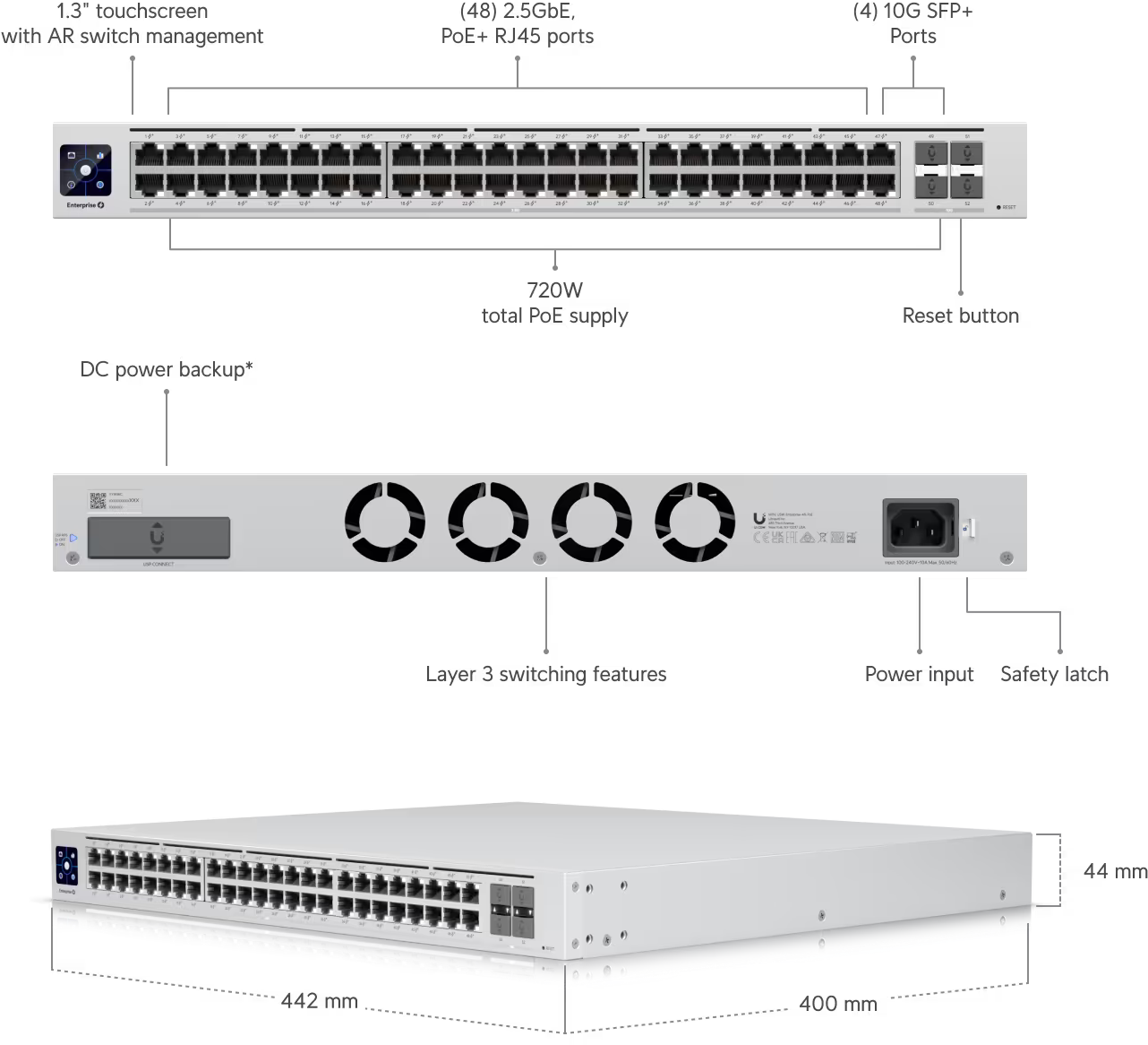 48 PoE USW-Enterprise-48-PoE предлагает самый большой набор портов среди коммутаторов промышленного класса с PoE+. С его помощью можно развернуть большую сеть беспроводных точек доступа стандарта WiFi6, с которой не справился бы гигабитный коммутатор. Пропускная способность