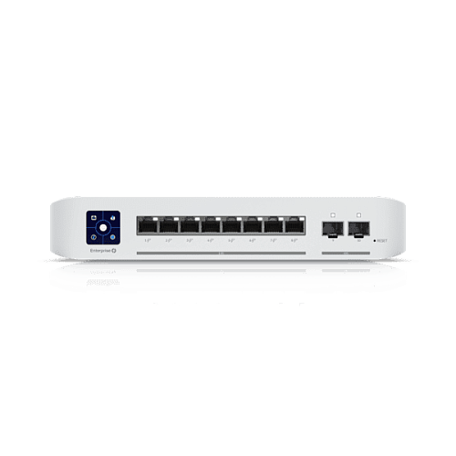UniFi Enterprise 8 PoE соответствует требованиям пропускной способности корпоративного уровня и обеспечит экономичную миграцию на беспроводной стандарт 802.11ax для ресторанов, офисов и прочих предприятий малого бизнеса. Наличие портов SFP+ позволяет подключать UniFi Enterprise 8 PoE к волоконно-оптическим магистральным каналам. Коммутатор оснащен цветным сенсорным дисплеем диагональю 1.3", а в обновлениях программного обеспечения ожидается поддержка функций Layer 3.
